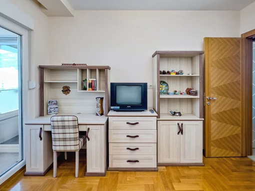 Стильно оформленные апартаменты с двумя спальнями и большой террасой в комплексе SVETI LUKA на первой линии. Полностью мебелирована и готова к проживанию.Теплый пол по всей квартире, кондиционирование каждой комнаты, интернет, спутниковое телевидение, в гостиной зоне есть возможность установки печи, камина.Состав помещений:Коридор: