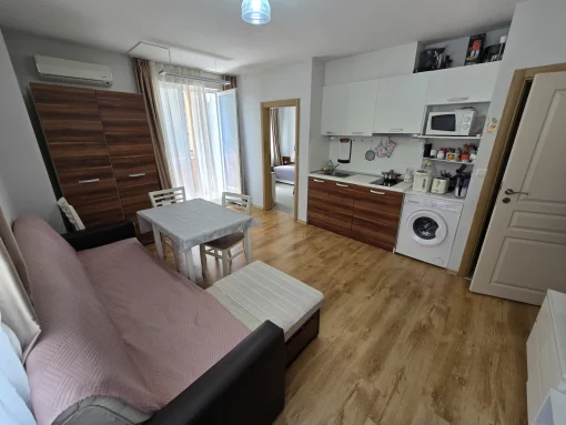 Description of object:nThis bright and spacious three-room apartment is located in the exclusive holiday complex "Riviera Fort," directly by the sea in the popular resort of Ravda on Bulgaria's Black Sea coast.nnThe apartment is situated on the 4th floor and has a total area of 105 m^2. It consists of a large living room with an open kitchen, two separate bedrooms, a bathroom with a shower and toilet, and a spacious balcony with a magnificent view of the sea.nnThe property is fully furnished and equipped with all necessary appliances - air conditioning, washing machine, refrigerator, stove, television, etc. Thanks to the large windows and southern orientation, the apartment is very bright, sunny, and offers a pleasant atmosphere.nnIt is ideally suited for personal holidays by the sea as well as an investment with excellent rental potential.nnFixture and fittings:nPartially furnished (living room and kitchen partially equipped)nnAir conditioning (cooling/heating) in all roomsnnLarge living area with access to the balconynnBalcony with direct sea viewnnHigh-quality flooring (tiles and laminate)nnPVC window frames with thermal insulation glazingnnSecurity doornnInternet and TV connections preparednnElevator in the buildingnnAmenities in the "Riviera Fort" complex:nnLarge outdoor pool with children's areannWell-maintained garden with tropical plantsnnRestaurant and caf'e with sea viewsnnTennis court / multi-sports courtnnChildren's playgroundnnReception and 24-hour security servicennDirect access to the beachnnParking for owners and guestsnnLocation:nThe "Riviera Fort" complex is located in one of the best areas of the popular holiday resort Ravda, directly by the sea and just a few steps from the sandy beach. The surroundings are quiet, green, and ideal for families or anyone seeking relaxation and comfort by the sea.nnThere are numerous restaurants, supermarkets, cafes, pharmacies, and shops nearby. The central bus stop with connections to Nessebar, Burgas, and Sunny Beach is within walking distance.nnDistance to the beach: directly at the seannRavda center: approximately 500 metersnnCity of Nessebar (UNESCO World Heritage Site): approximately 3 kmnnSunny Beach: approximately 6 kmnnBurgas Airport: approximately 25 kmnnThanks to its excellent location and infrastructure, the property is suitable both for permanent residence and for holidays or rental purposes.nnMiscellaneous:nDo you have questions about the property or would you like to schedule a viewing? Please contact us using the provided contact details, without any obligation.nn