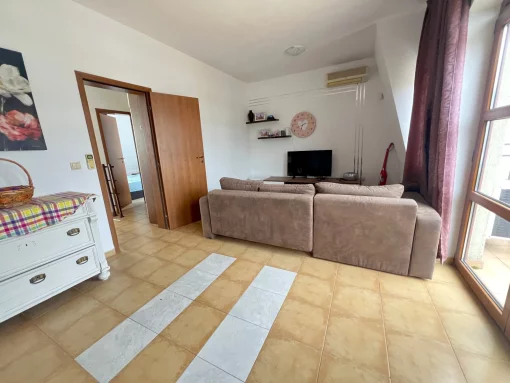 Description of object:n2-Room Apartment in the Sveti Georgi Complex - Kosharitsa, BulgariannWe are pleased to offer you a beautiful 2-room apartment in the well-maintained Sveti Georgi Complex in Kosharitsa, near the Sunny Beach. This property impresses with its quiet location, well-kept surroundings, and a magnificent view of nature and the sea.nnThe apartment is located on the ground floor (parterre), has a living area of 66 m^2, and features a terrace with a view of the pool—ideal for relaxing outdoor moments.nnLayout and AmenitiesnnEntrance areannLiving room with integrated kitchennnBedroomnnBathroom fitted as a shower roomnnTerrace with direct pool viewnnThe apartment is sold fully furnished and is move-in ready—perfect for personal use or as a holiday property with rental potential.nnFacilities & Infrastructure of Sveti Georgi ComplexnnWell-maintained green spaces and gardensnnSwimming pool for adults with children's areannLounge and relaxation zonesnnSecured territory with access controlnnYear-round securitynnManagement company offering services and rental optionsnnFixture and fittings:n2-Room Apartment in the Sveti Georgi Complex - Kosharitsa, BulgariannWe are pleased to present a cozy and well-maintained 2-room apartment in the popular Sveti Georgi Complex in Kosharitsa, just a few minutes from Sunny Beach. This property impresses with its peaceful location at the foot of the Balkan Hills, a well-kept development, and stunning views of the surrounding nature and the sea.nnProperty DetailsnnLocation: Kosharitsa, Burgas Region, BulgariannComplex: Sveti GeorginnFloor: Ground floor (parterre)nnLiving Area: 66 m^2nnTerrace: with direct view of the poolnnCondition: fully furnished and ready for immediate move-innnRoom Layout & AmenitiesnnEntrance areannLiving room with sofa, coffee table, armchair, sideboard, small cabinet, and air conditioning nOpen-plan kitchen with refrigerator, stove, and sink nnBedroom with double bed, bedside tables, and wardrobe nnBathroom with shower, washbasin, and toilet nnTerrace with direct access to the pool - ideal for relaxing nnThe apartment is handed over fully furnished and is immediately available—an ideal choice for personal use or as a holiday property with excellent rental potential.nnComplex Features & Infrastructure Sveti GeorginnSpacious, well-maintained gardens and green areas nnSwimming pool with children's section nnLounge and relaxation zones nnSecured premises with access control nnYear-round security nnManagement company offering services and rental management nnLocation & SurroundingsnnThe complex is located in Kosharitsa, a charming village about 6 km from Sunny Beach. Its elevated position ensures a pleasant climate and panoramic views, while shopping facilities, restaurants, and lively nightlife of Sunny Beach are accessible within minutes. The combination of tranquility, nature, and proximity to the sea makes this property particularly attractive.nnLocation:nLocation & SurroundingsnnThe complex is located in Kosharitsa, a charming village about 6 km from Sunny Beach. Its elevated position ensures a pleasant climate and panoramic views, while shopping options, restaurants, and the lively nightlife of Sunny Beach are just a few minutes away. The combination of tranquility, nature, and proximity to the sea makes this property especially attractive.nnMiscellaneous:nDo you have questions about this property or would you like to schedule a viewing? Feel free to contact us without obligation using the provided contact details.nn