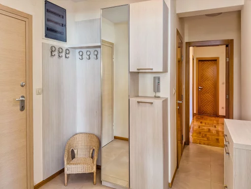 A comfortable three-storey house with a total area of 200 m² is for sale, ideal for family living or holidays. The ground floor features a bedroom, a spacious living room, a kitchen, a bathroom and a terrace. The first floor includes a kitchen, a bathroom, an additional room and a terrace. The second floor offers three bedrooms, a bathroom and a terrace with a beautiful mountain view. The house is fully furnished and equipped with air conditioning and internet. A private parking space is available on the property. The sea is only 400 meters away, the nearest shop is 700 meters away, the school is 2 kilometers away, and the kindergarten is 1.5 kilometers from the house.