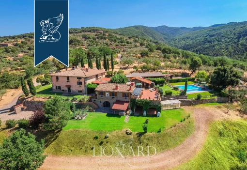 This historical villa for sale is in the province of Florence, in the charming town called Vinci. This villa was built in the 19th century and is situated in an elevated position offering a breathtaking view over lovely hills covered by vineyards and olive groves. This three-floored estate sprawls over 1,200 m^2 in total. On the ground floor there is an airy and elegant living area with an entrance hall, a living room, a dining room with a fireplace and kitchen. Moreover, a stunning swimming pool is also located on the property. Comfort, luxury, privacy and practicality are the paramount features of this staggering villa for sale in the province of Florence, the ideal place to enjoy Tuscany landscapes in total elegance and comfort. rif.3500